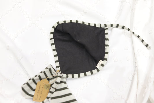 Merino Wool Bonnet and Mitts in Green and White Stripe